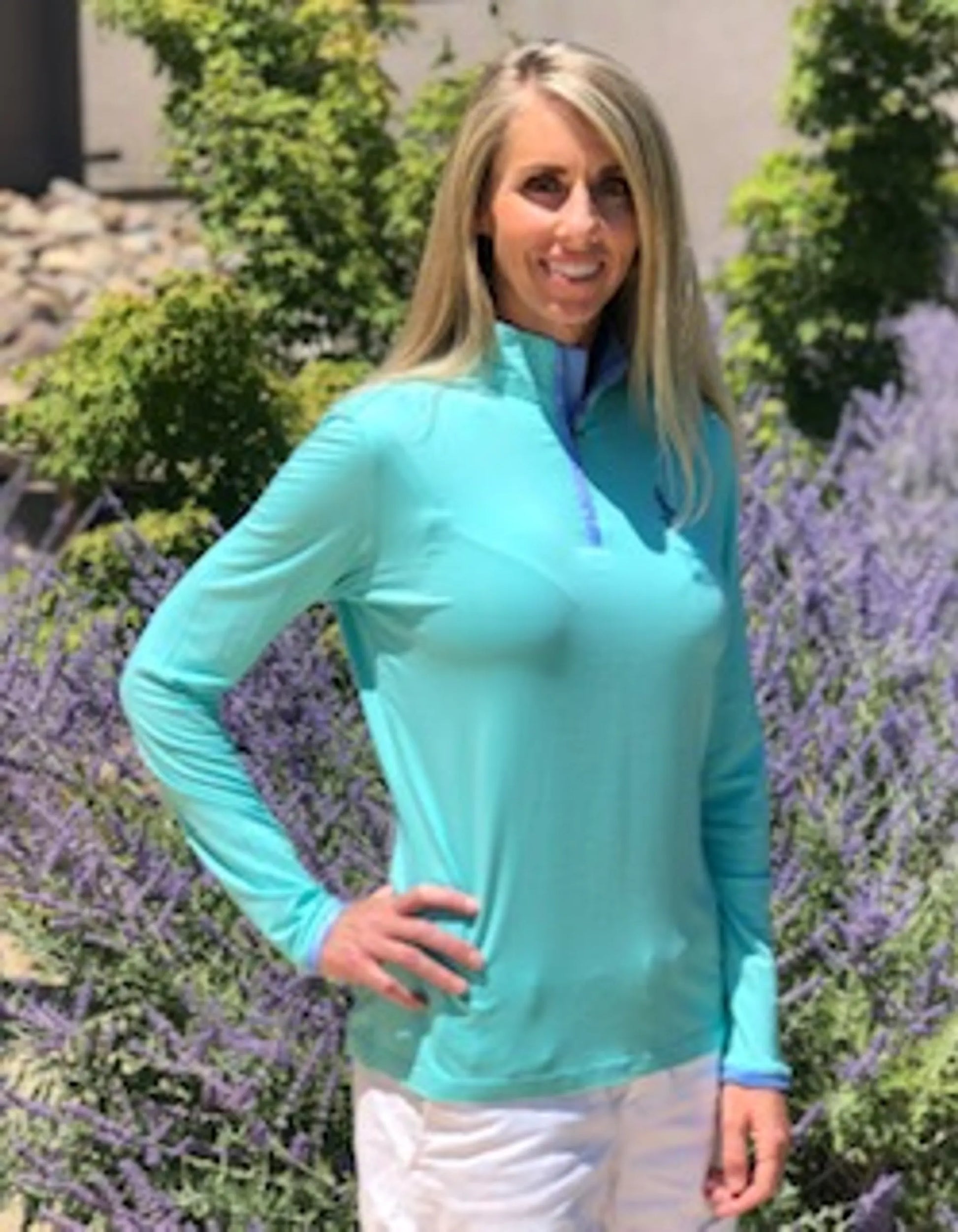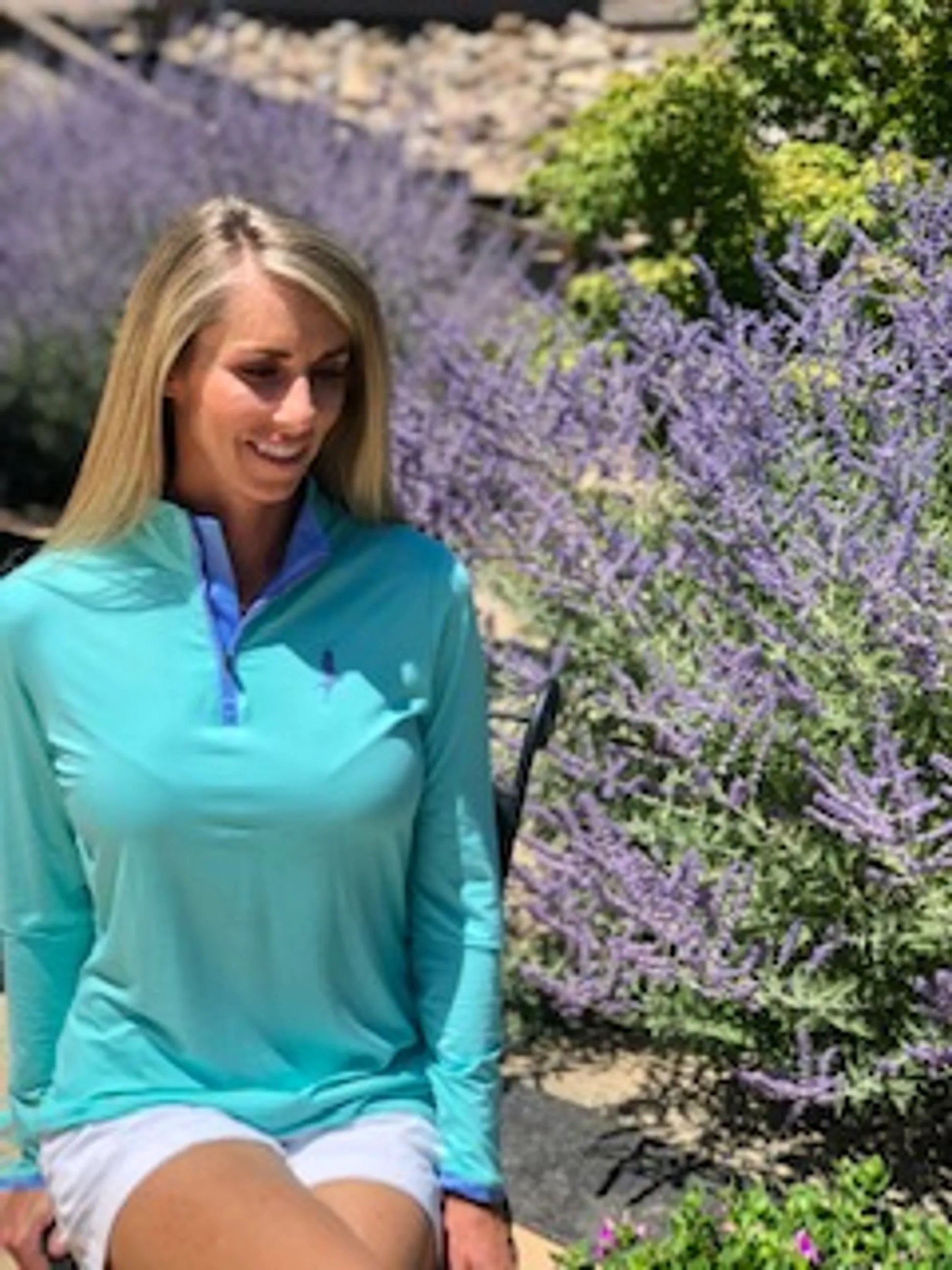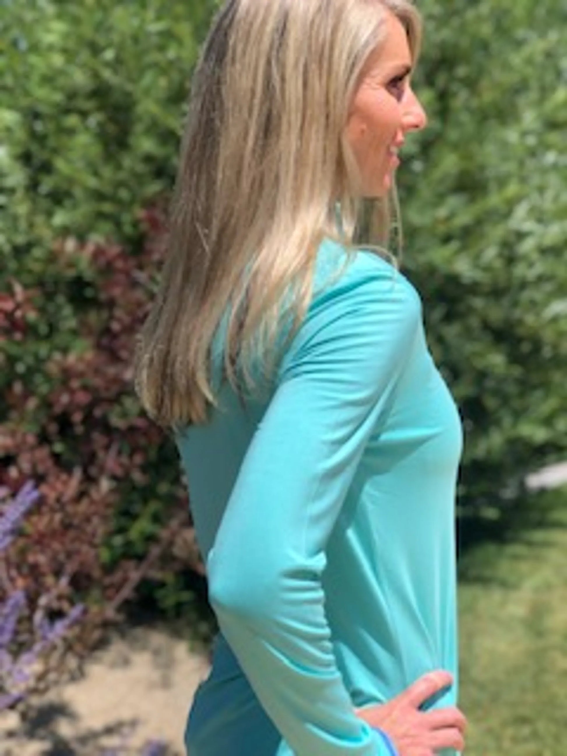 Amplify your personal zen with "The Sophia," our signature 1/4 zip from highly sustainable, natural, bamboo. Travel, play, work and parent with this sumptuous wardrobe staple. Pair with activities that nourish your spirit! Exotic retreats, rounds of golf, hiking, racing chicanes or soaking up city festivals, "The Sophia" thrives with you. The gently curved front and elongated tail offer flattering coverage. Angle cut at the hands for extension of wrist coverage. Cooling, wicking, anti-microbrial, UPF 50+.